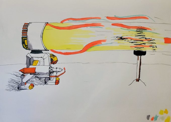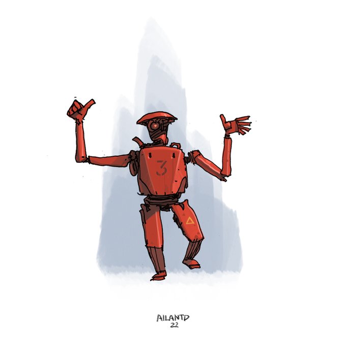 Industrial utility #robot from "Agnostic Robotics" IV Soulless machines built to perform without any remorse. Digital color over #ballpointpen #doodle. #mechtober2022 #mechtober