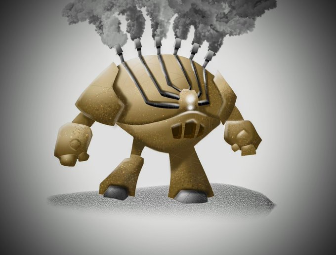 Industrial utility #robot from "Agnostic Robotics" III Soulless machines built to perform without any remorse. Digital color over #ballpointpen #doodle. #mechtober2022 #mechtober