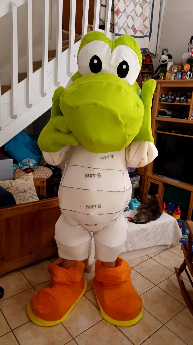 Work in progress of my yoshi cosplay!! And before you ask no I cannot breath walk see or grab things- LOL #Cosplay #megacon #megacon2022 #yoshi #mario #supermario