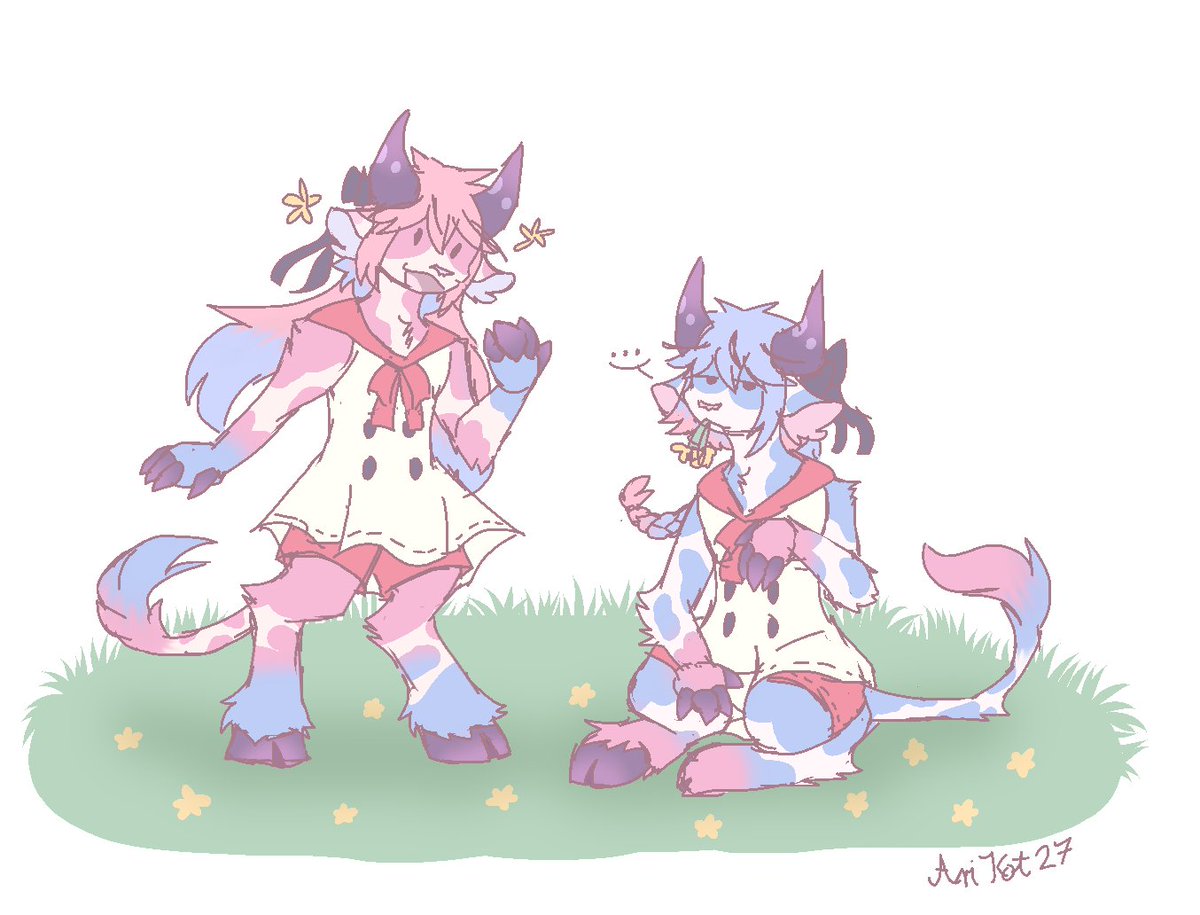 Meika Hime and Mikoto but they are cow people ❤️💜 [ #vocaloid #MeikaHime #MeikaMikoto #furryart ]