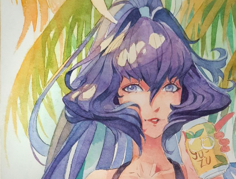 Meiya Mitsurugi Muv Luv Закончила Мейю :3 Мне очень нравится ее дизайн, красивая девочка. Банка напитка Yuzu - такой коктейль существует, недавно его пила, очень вкусный.Японские слабоалкогольные напитки просто божественные. #muvluv #meiya #Watercolor