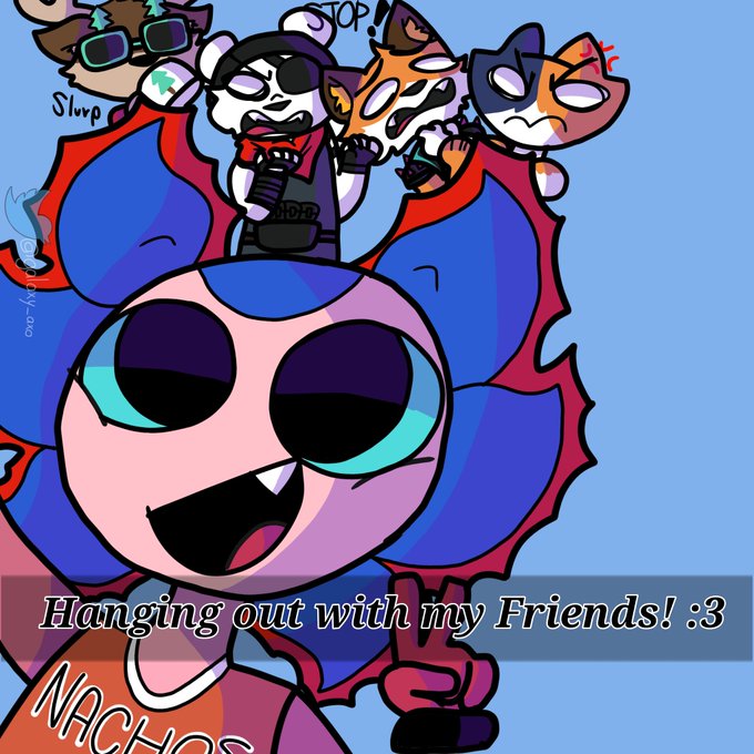 Axo loved to stay with his friends all times amd take photos of them... They are... Hugging each other #FortniteArt #FortniteVibin #Axo #Meowscles #Fennix #FurryArt