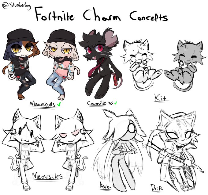I made some drafts for other charms. I’m not sure if I’ll actually make them but if there’s interest I’ll definitely consider it, and if there’s a character you’d like to see feel free to comment #Fortniteart #Fortnitecamille #Meowskulls #Meowscles #FortniteChapter4 #Fortnite