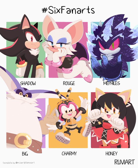 Did a thing. Im tired... #sixfanarts #shadowthehedgehog #rougethebat #mephilesthedark #bigthecat #charmybee #honeythecat