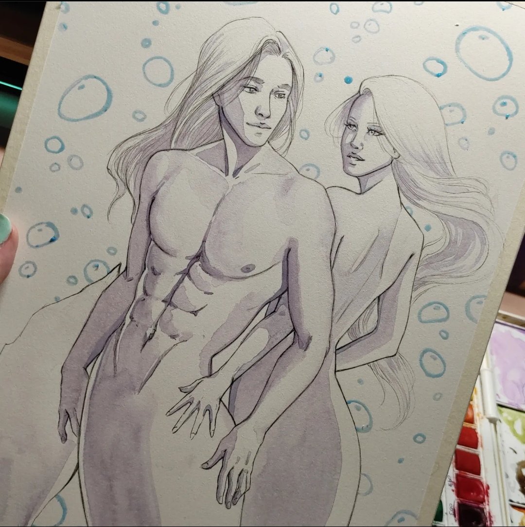 Hoy he empezado otro dibujito de sirenas... Y esta vez con un tritón sexy 😏🤣 El jueves a las 18.30 le doy el color! #mermay #mermay22 #mermay2022 #wip #wipart #watercolour #darkelvestyle