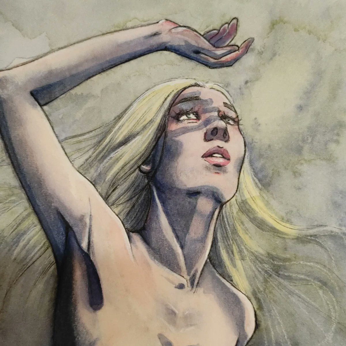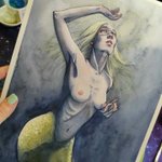Así están quedando este #mermaid ! Ya lo terminaré el lunes :). Gracias por haberos pasado por el Stream y por las raids! Os recuerdo que el sábado 28 estaré en Mundofreak en Manises ❤️ #mermay #mermay22 #mermay2022 #watercolour #darkelvestyle