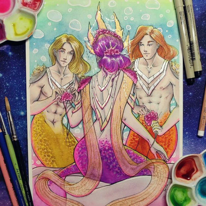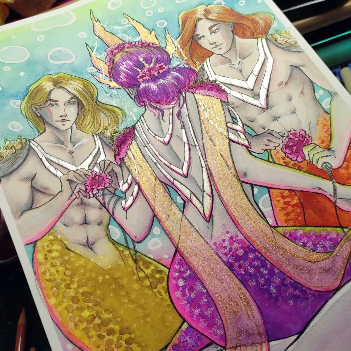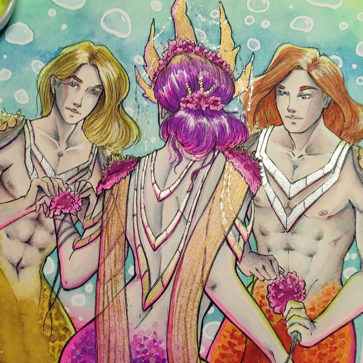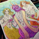 Por fin he terminado la pareja del #mermay! Al final no se ha quedado mal, que no estaba muy convencida jeje. Muchas gracias por haber estado por el Stream ❤️❤️❤️ #mermay22 #mermay2021 #mermaid #couple #watercolour #darkelvestyle