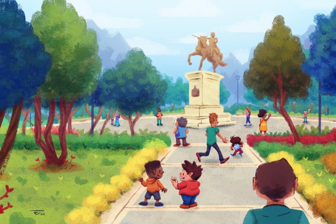 Hi guys! So this is my latest #illustration and the most complex with this brush (so far) It's my hometown's Plaza Bolivar from #Merida #Venezuela I don't usually make anything related to my country but I felt this was a nice opportunity for a study #kidlit #kidlitart