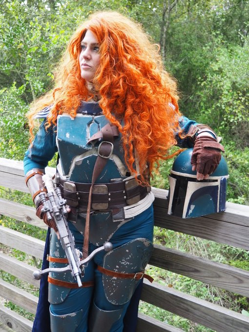 Google informed me that this shoot was SIX YEARS AGO, so have some of the Merid'alor 💚🐻🐻🐻 . 📸: @byrdsofafeather (go buy yarn from her!!) . #cosplay #starwars #starwarscosplay #mandalorian #mandaloriancosplay #mando #mandomerida #cosplayer #princess #merida #Disney