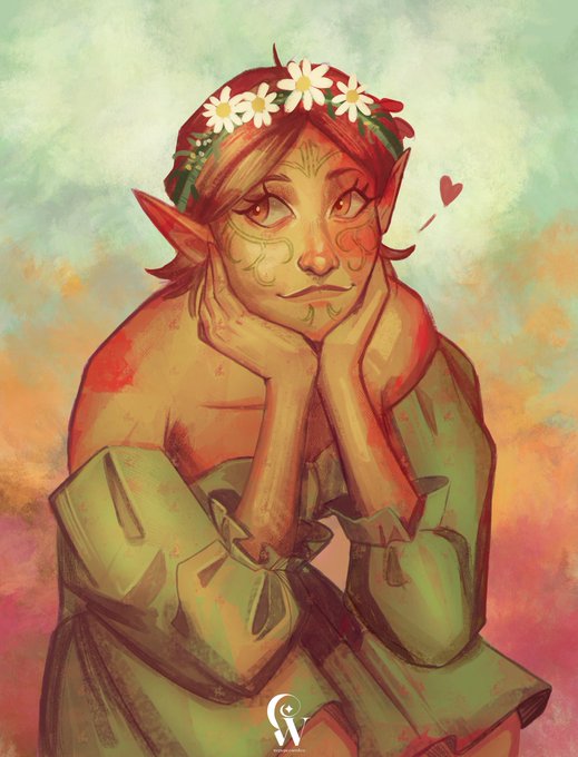 Merrill with daisies flower crown 🥰 Okay I’m loving this texture brush so much, and playing around with it. #dragonage #merrill #wepepedraws