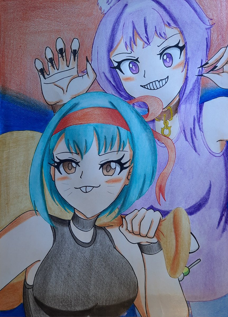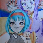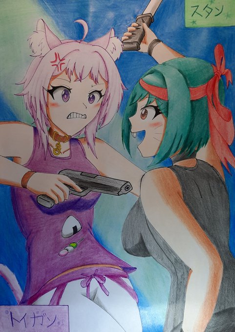 デジタル落書き。 キャル=サンを捕まえたことを報告するディオン=サンと背後から襲おうとするキャル=サン。 どこかで見たことある?きっと気のせい! 影とか背景とか途中でめんどくさくなったので落書きな! #MetalSlug #メタルスラッグ #metalslugattack #メタルスラッグアタック #MSA #メタスラ