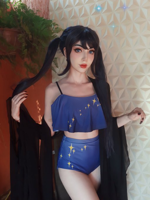 A grande astróloga Mona Megistus! . Muito Obrigada @ micotakuclub por esse biquíni lindo da Mona de Genshin impact! Muito Obrigada também a @miccostumes por essa saída de banho maravilhosa 💙. #miccostumes #micotakuclub #GenshinImapct
