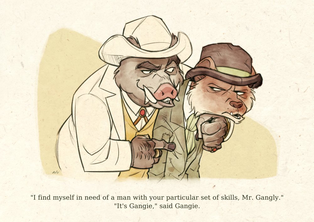 Two more sylvan sleuths from @dimension20show's #MiceAndMurder, a capitalist pig and his criminal pal.
