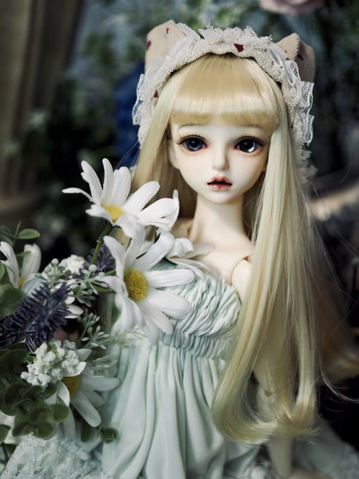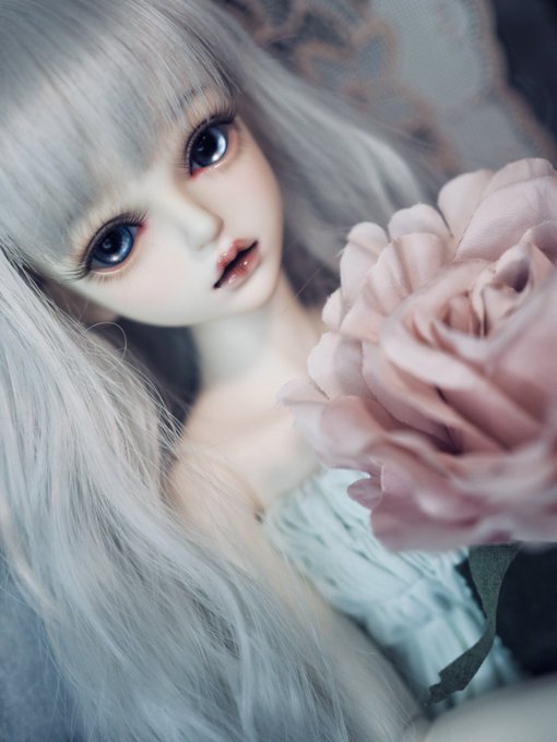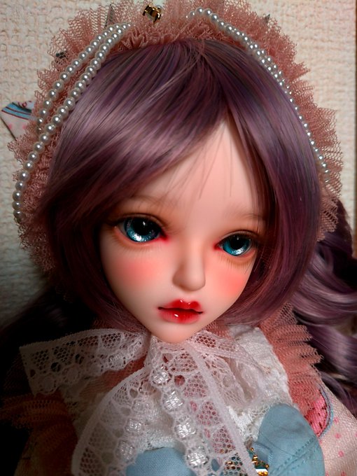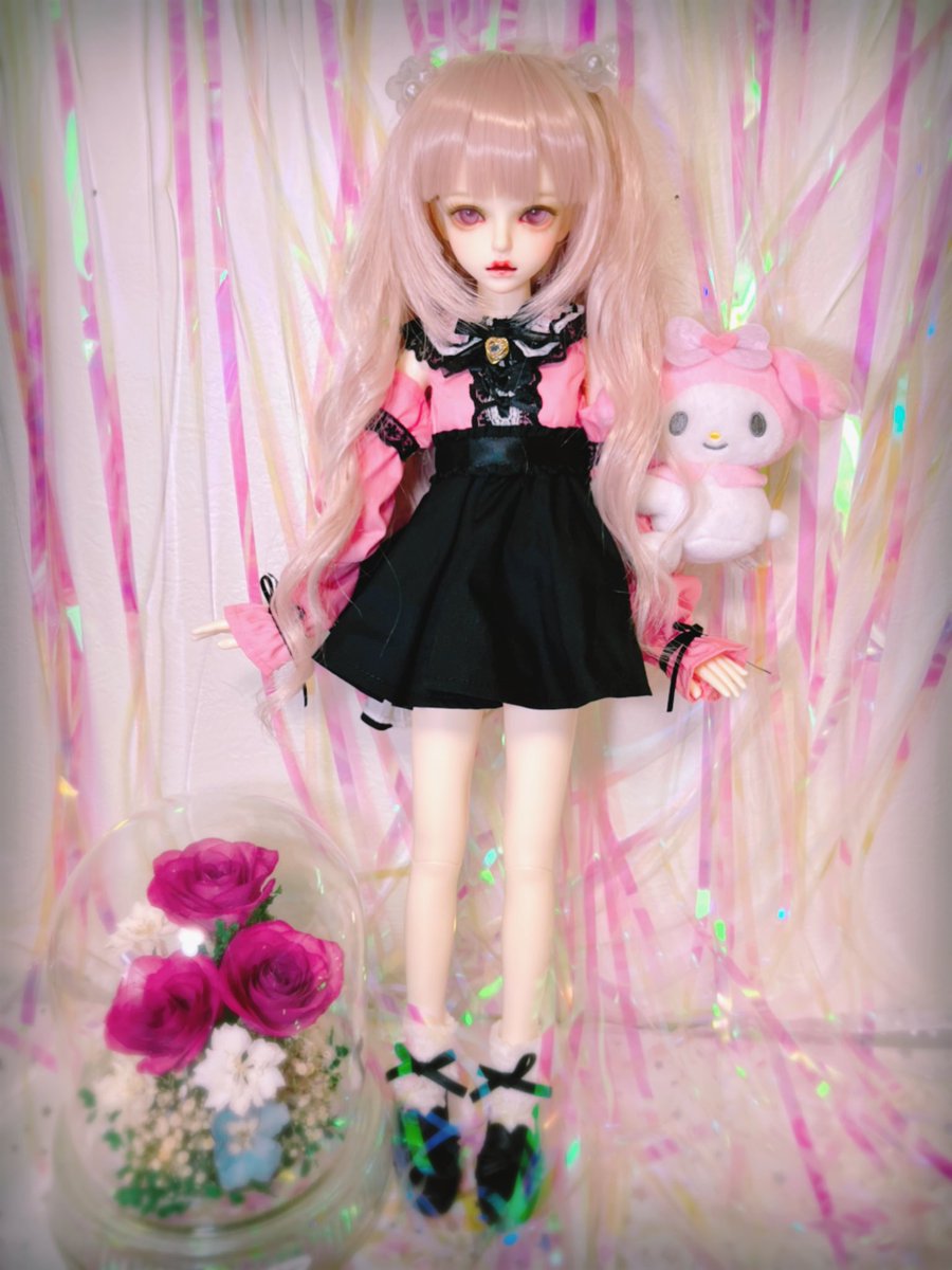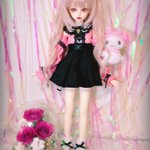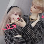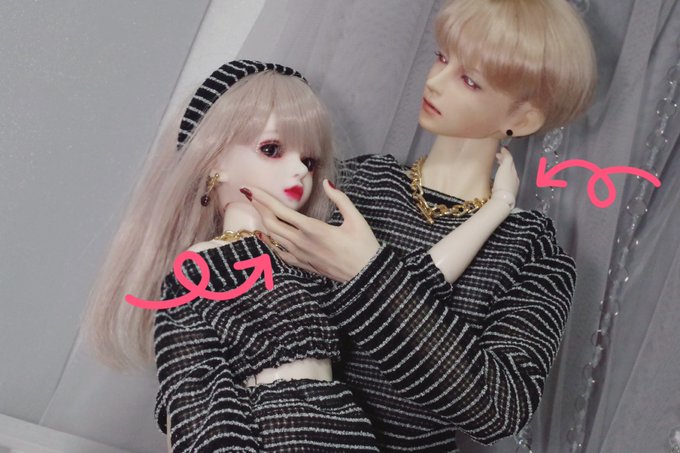 #今夜のドール撮影120分一本勝負 お題【たわむれる】過去写真 撮影中に2人して何してんの?😶 「ほっぺむにむに🐙」 「首こちょこちょ🍓」 #MyouDoll #Michelle #TelesthesiaDoll #俊贤