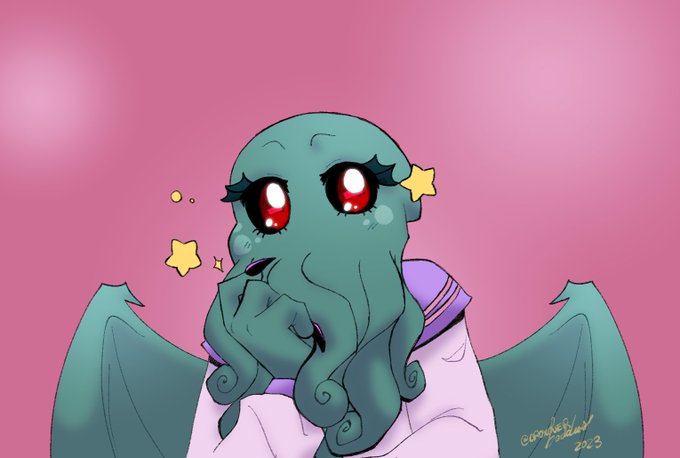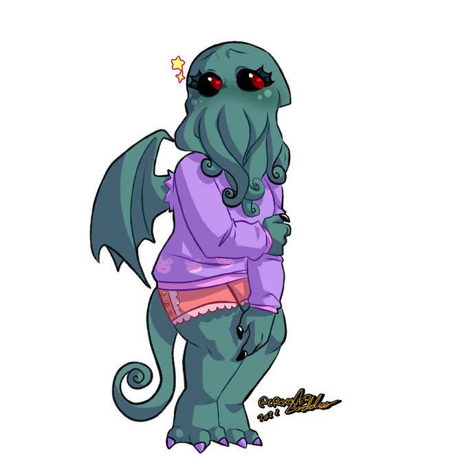 Cthara! She speaks in a language that makes human's brains melt out of their ears. Everyone expects her to be a ruthless killer like her dad but nah she's shy and sweet and collects Barbie dolls. #middleversevirginia #artistsontwitter