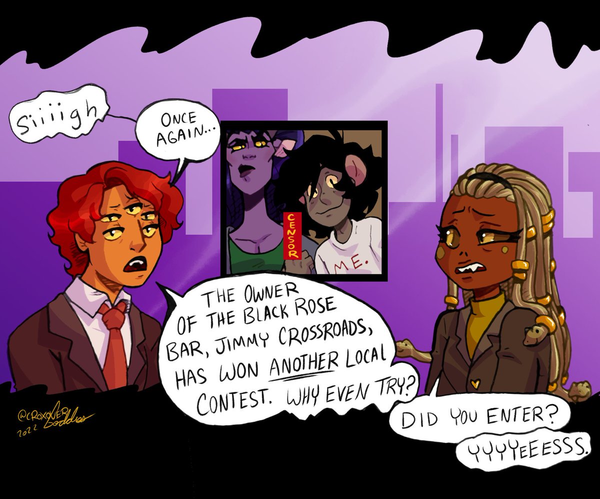 First three panels of a Middleverse Virginia minicomic. Kinda wanna make short comics to introduce all the different areas of the city and the types of creatures that live there. #middleversevirginia #originalcharacter #artistsontwitter