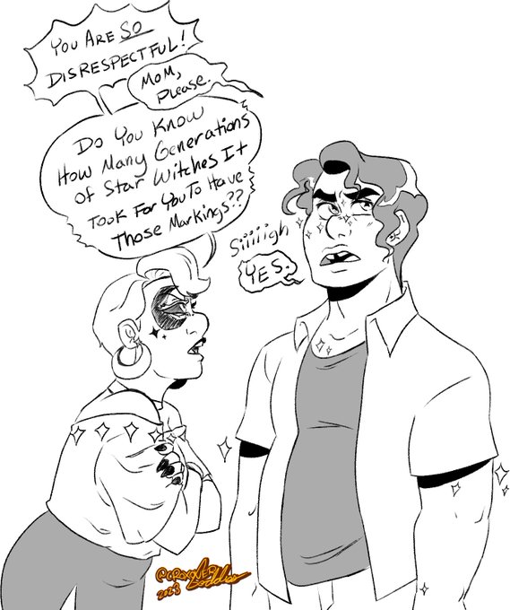 Fun Fact! Crest's witch marks glow because so many of his family's past generations were star themed witches! Also his mother is terrible. #Middleversevirginia #originalcharacters #artistsontwitter