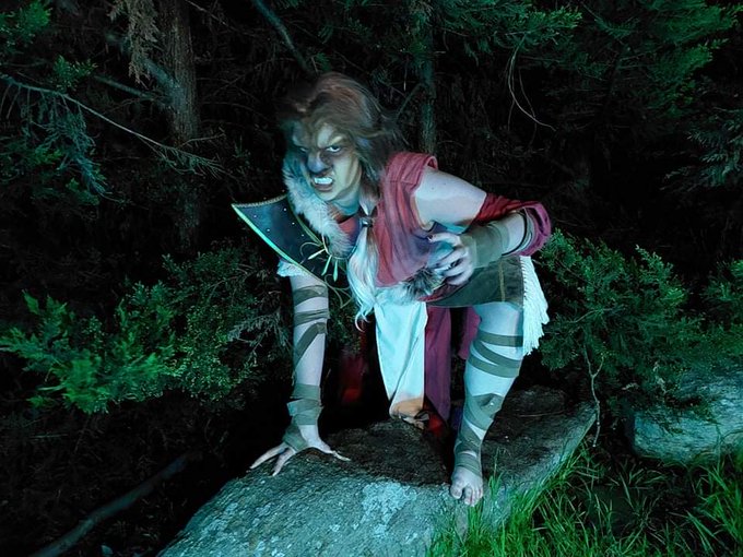 The Moon's Fury.. 🌕 SFX makeup by @HenchwenchMakes of @HASfoundry Arlinn Kord from @wizards_magic #mtg #midnighthunt #arlinn #magicthegathering #mtgcosplay