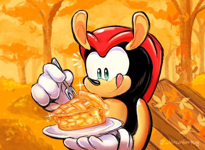 Mighty welcomes Autumn! (and sweet apple pie!) 🥧🍂 #mightythearmadillo #raytheflyingsquierrel #sonicfanart #SonicTheHedgehog