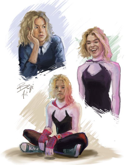Some Milly Alcock as Gwen Stacy sketches I did 💜 #Spiderman #SpiderGwen #AcrossTheSpiderverse #acrossthespiderversefanart #fanart #GwenStacy #MilesMorales #MiguelOHara #Spiderpunk #millyalcock