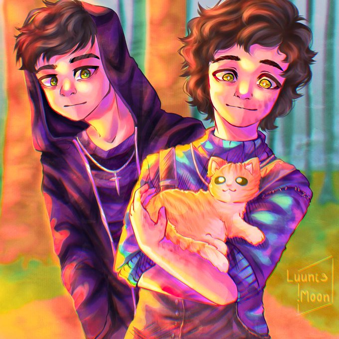 #Ranboo ‘s monster prom streams were so fun TuT here is mr Boo himself in a screenshot redraw next to the beloved #Milo 💙 (#monsterprom ,#ranboofanart , #monsterpromfanart )
