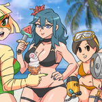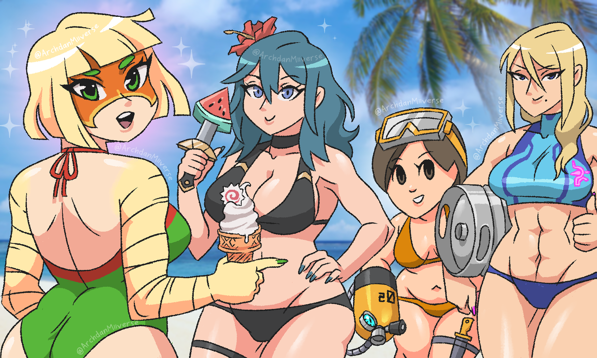 Beach Party! With Min Min, Zero Suit Samus, Byleth and Mii gunner. Fun in the sun. 🍜⛱☀ #SmashBros #SmashBrosUltimate #SuperSmashBros #SmashUltimate #SuperSmashBrosUltimate #MinMin #ARMS #metroid #FireEmblemThreeHouses #NintendoSwitch #Nintendo