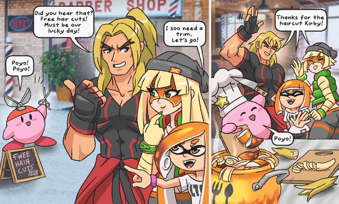 Ken, Inkling and Min Min take Kirby's free Hair cut offer. Free? What's Kirby getting out of it?🍜🦑✂ #SmashBros #SmashBrosUltimate #SuperSmashBros #SmashUltimate #SuperSmashBrosUltimate #Minmin #Splatoon2 #Kirby #NintendoSwitch #Nintendo