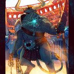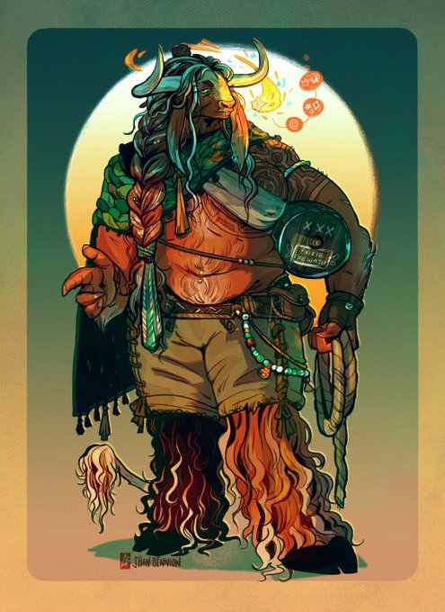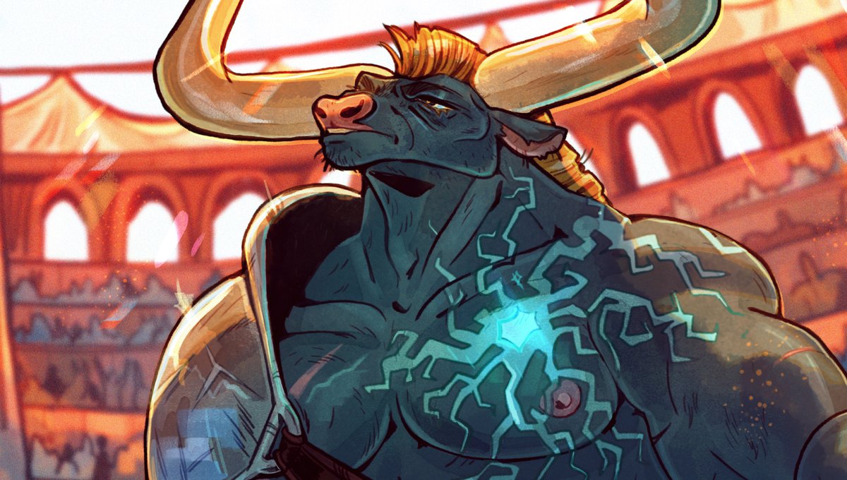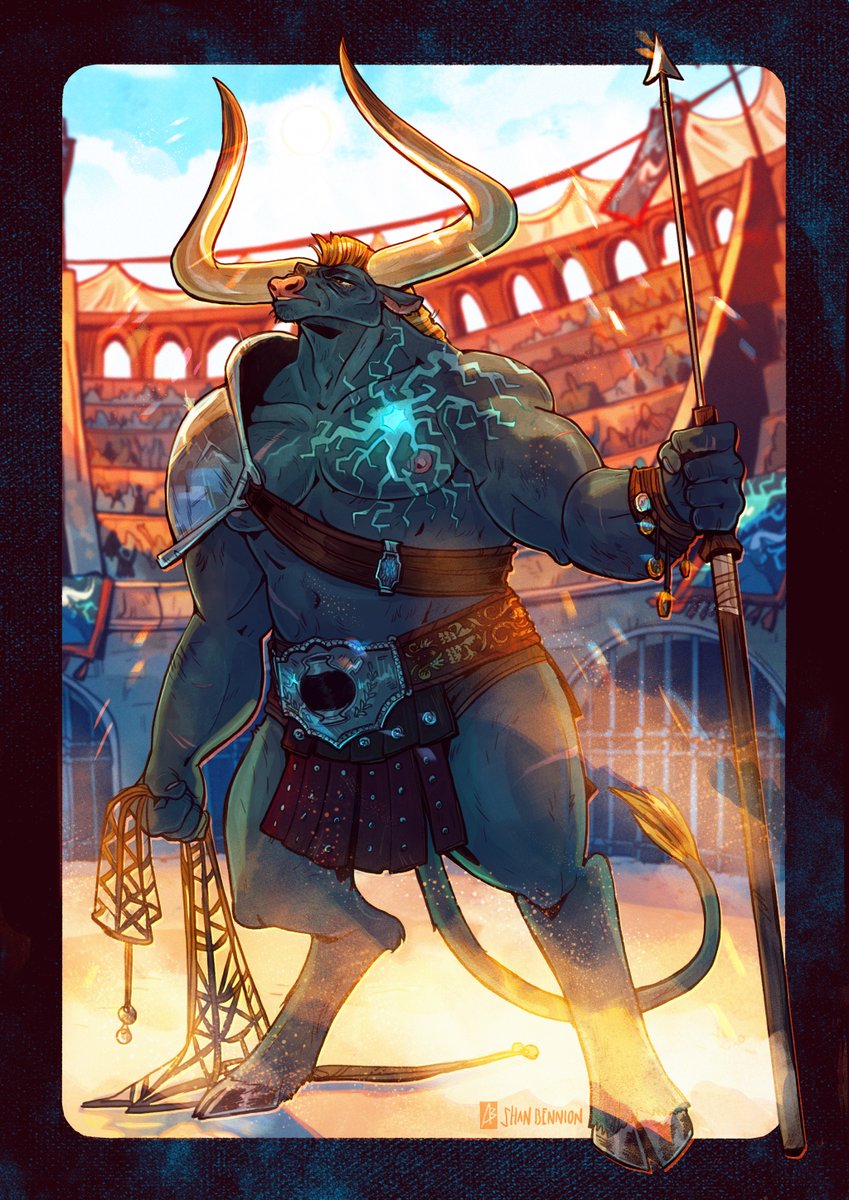illustration commission for @andreriveraart of Kaz, the Minotaur Barb! 🐮 See him on in Tragedy of the Theolosian, a Live D&D Campaign on Twitch (via @TotalPartyKiss) on Sundays! #anonbeadraws #digital #digitalart #commission #dndcommission #dnd #Minotaur #furry #gladiator