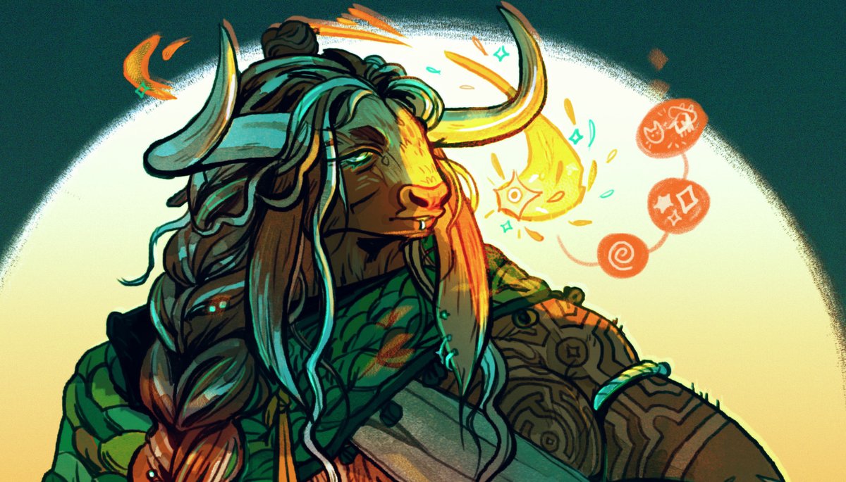 "Oh, is that so? You heard this from Mr Light, you say?" ✨ Miss Buttercup my minotaur barbarian and her sprite Luma from @thecoffeerain 's Witchlight5E Campaign! #anonbeadraws #digital #digitalart #dnd #minotaur #barbarian #furry #witchlight5e #artistsontwitter #dndart #dndoc