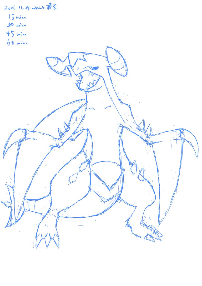 ポケモンDPから「ガブリアス」を模写してみました。ポケモンくらいシンプルだと1hで描けるかなと思ったけど、今の実力ではこんなものでした…全身のバランスを取るのに時間かかるっぽい。あしたもがんばります…!! #MintDailyPic #絵描きさんと繋がりたい
