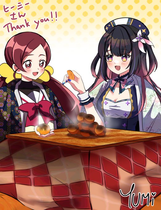 Listos para la gran #MisoFiesta de hoy?? Es el cumpleaños de #HinaMisora y se festeja en grande! A comer rico y de postre una deliciosa naranja quemada 😋 Illust 🎨@/yumi_san0112 #MisopaArt