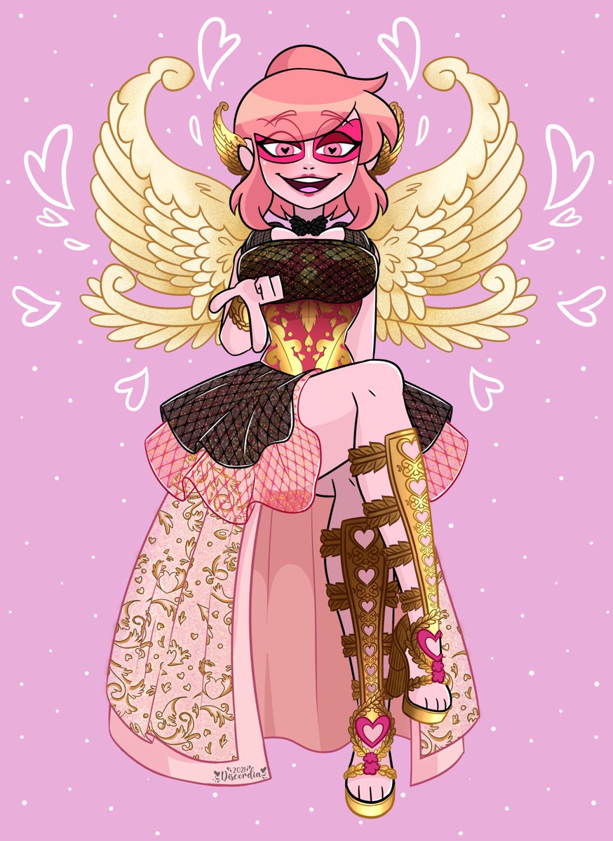 miss heed con la ropa de cupido de ever after high, alguien en un grupo de fb publico personajes relacionados con el amor y de ahí salio la idea #Villanos #Villanous #Villainousfanart #EverAfterHigh #cupido #MissHeed