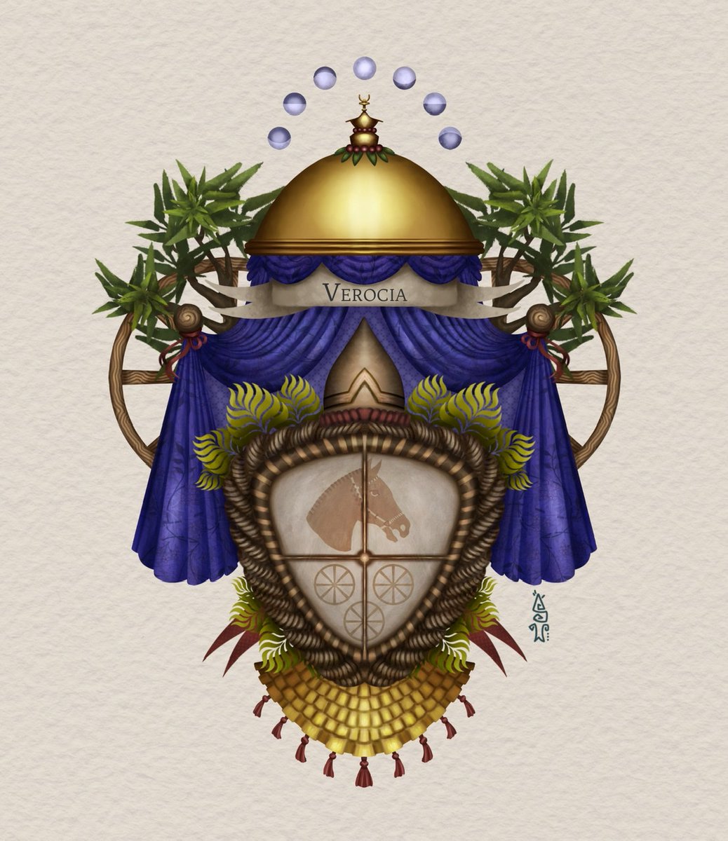 Coat of arms for @RAW_RoninArts story by @OwlWithHorns Verocia is a thriving trade city close to the Eastern Steppes, where wide market squares form a bold contrast to the delicate fountains and lush gardens that populate its districts #medieval #mittelalter #fantasyart #dndart
