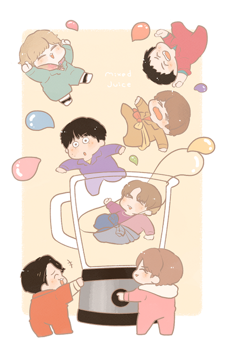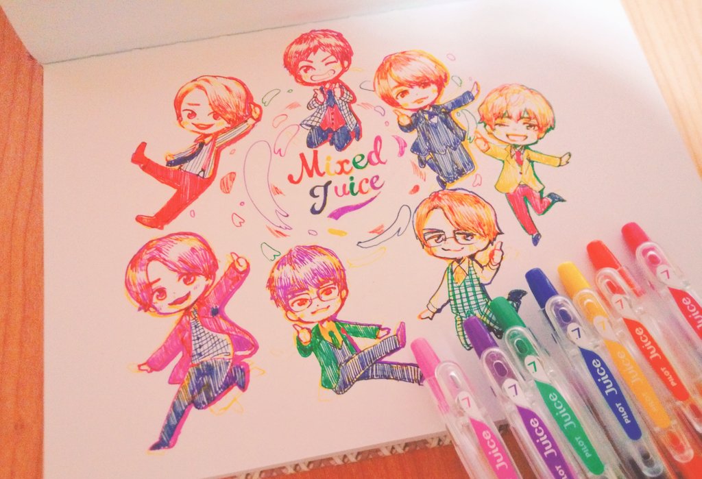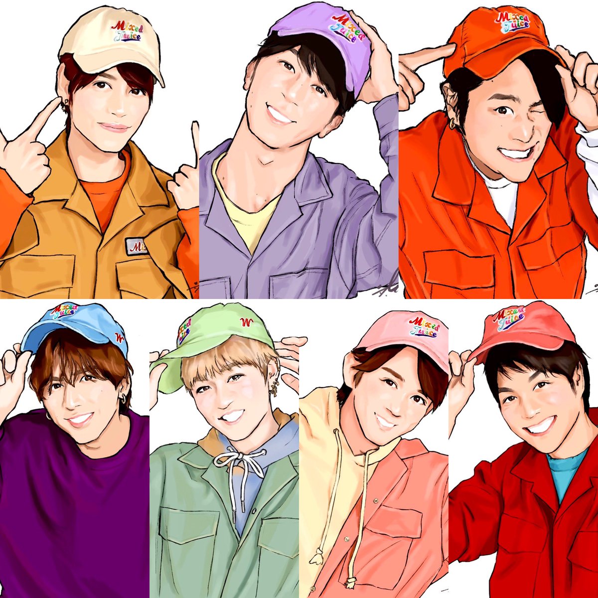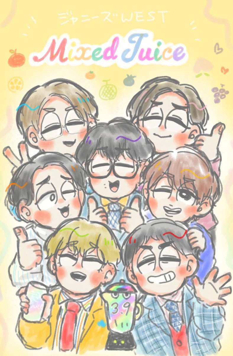 我が家のジャス民にヘッダーつくってと言われたので、超JUICE👍なジャニーズWESTの皆さんを描きました! それにしても、週刊少年ジャンプ兼バンドオタクに頼むもんじゃないよ しらんけど…💁♂️ #ジャニーズWEST #MixedJuice🍹