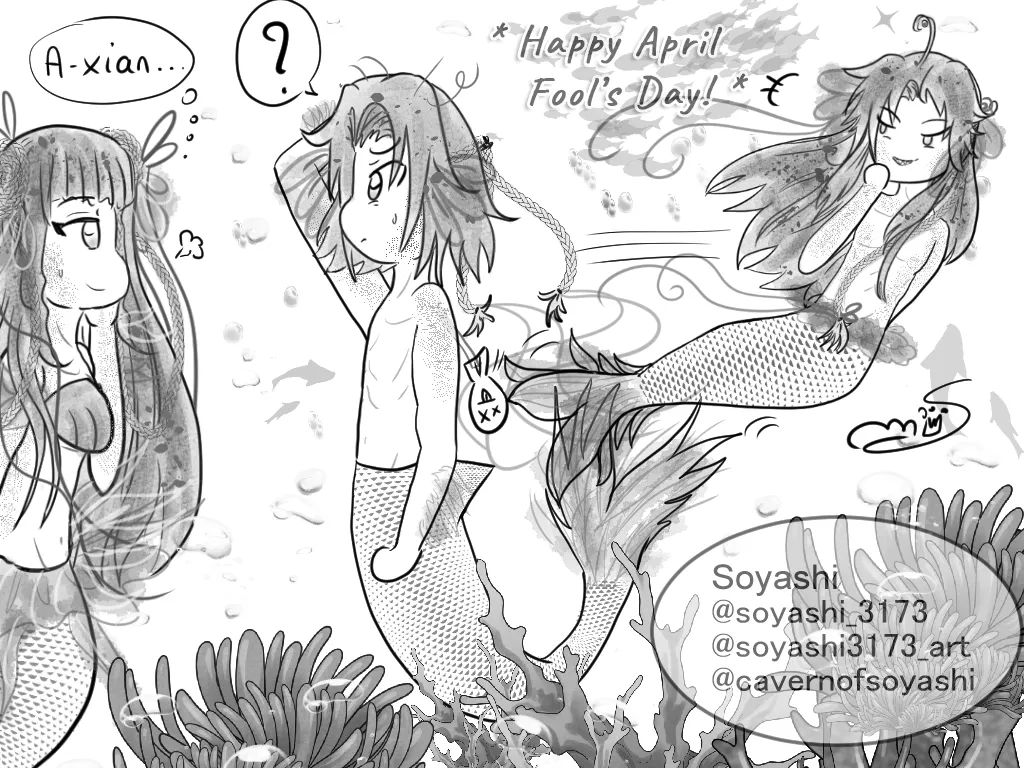 (1/2) 🐠Happy April Fool's Day! 🐟 I just came on time and express... so he's neither on time nor late lolx'DDDD 🐟 🐟 🐟 🐟 🐟 🐟 #modaozushi #modaozushifanart #Mdzs #mdzsfanart #fanart #weiwuxian #weiying #merman #mermaid #UA #fish #yùxian #魔道祖师 #魔道祖师fanart #yucheng