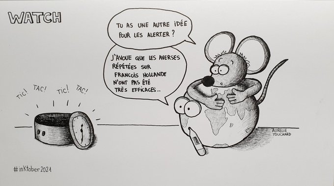 Inktober, day 8 : watch... in French because I think that only French people understand my reference! 😅 M. Hollande, si vous me lisez... 🤫 #inktober2021day8 #inktober2021 #ecologie #climateChange #politique #molotowmarkers #sketch #sketchnote #humour