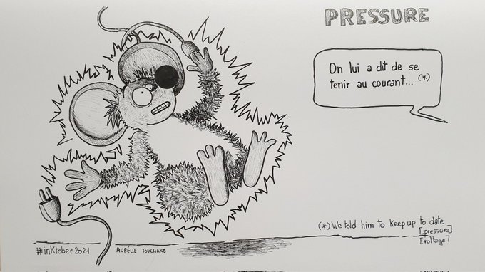 Inktober, day 9: pressure... in one of the French translation and a word play. Courant = electricity (so, voltage). And the expression means : "to keep up to date" #inktober2021day9 #inktober2021 #inktober2021day9pressure #politique #molotowmarkers #sketch #humour #jeudemots