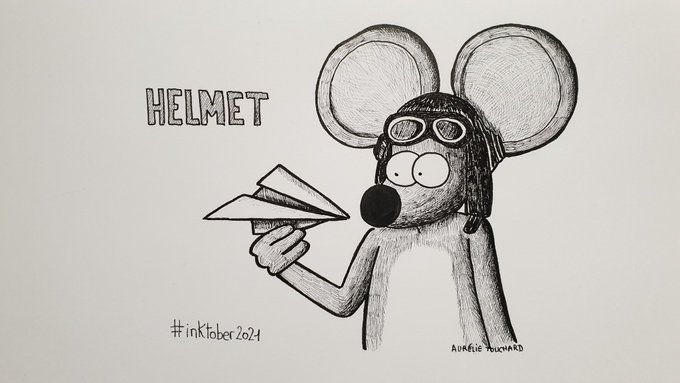 Inktober, day 15 : helmet (casque) #inktober #inktober2021day15 #inktober2021 #inktober2021day15helmet #molotowmarkers #sketch #dessin #illustration #mouse #Mouztik #paperplane #helmet