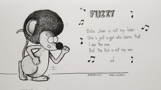 Inktober, day 21 : fuzzy (qui parfois veut dire crépu) #inktober #inktober2021day21 #inktober2021 #inktober2021day21fuzzy #molotowmarkers #sketch #dessin #illustration #mouse #Mouztik #billiejean