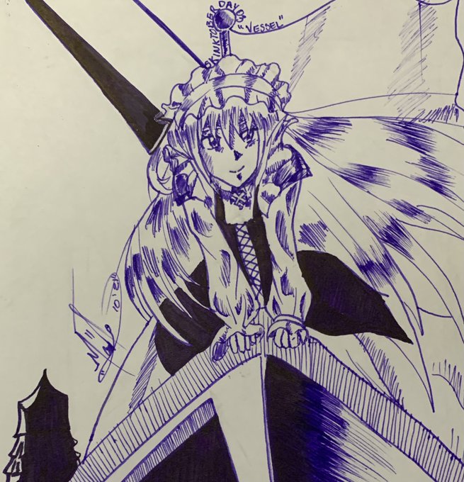 #SKInktoberDay3: “Vessel” y que mejor que la niña que vive en uno? Así que Iron Maiden Jeanne hecho con #ZIG brushable purple #Monami plus pen 3000 violet #IronMaidenJeanne #SHAMANKING #inktober2021 #SKInktober
