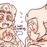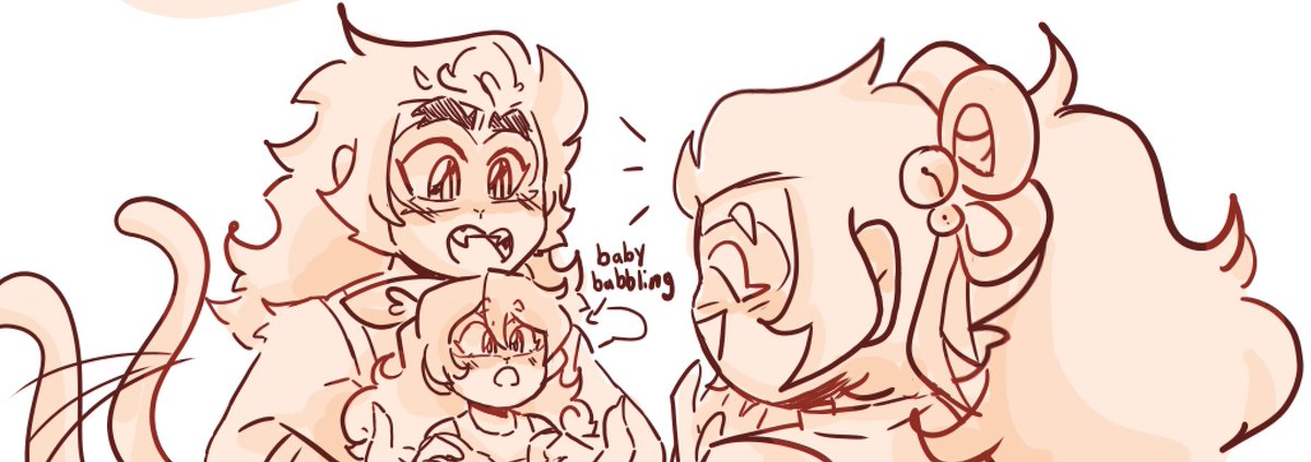 My artblock allowed me to make a cute little drawing with Wukong being a silly father and macaque a careful father. 💜🧡💛 in definition Chyou was very small and sleepy, she was born from a rock btw >;)✨ #MonkieKid #monkiekidoc #shadowpeach #lmkoc #LMKfanart