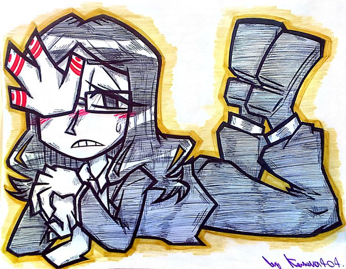 🚬 A New Member of The Babygirl Club 📄 . . . #CoralGlasses #ENA #DreamBBQ #Fanart #TraditionalArt #Monochrome #Cartoon #Videogame #IndieGame #Art
