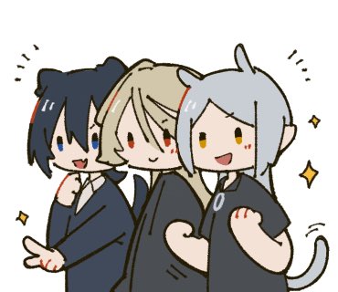#illustration #OC #創作 #Monsterーーーs 以前リクエストいただいたオオカミ男🐺とヴァンパイア🦇のTS絵です。 エイプリルフールめっちゃ過ぎちゃっててすみません〜リクありがとうございました!