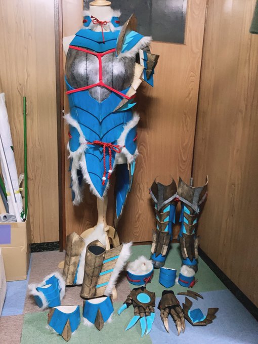 昨日6年連れ添ったジンオウさんの解体終わりました😭 結局1度しか着てあげられなかったなあ。 初めてのフル装備とはいえ、もう少し余裕もって着られる仕様にしたらよかったなぁって思いました🥺 鬱血までいかないけど当時で結構キツかったので… #monsterhuntercosplay #モンハンコスプレ