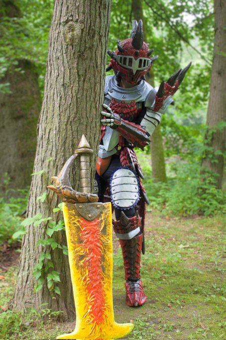 Sometimes I wish I had not sold my #rathaloscosplay seeing how it was my very first MH armor. I'll be recording some of the shapes and forms on the next set after Rathian. . Photo by @vogel.art.shop . . #MonsterHunter #monsterhuntercosplay #モンハンコスプレ #モンハン #コスプレ