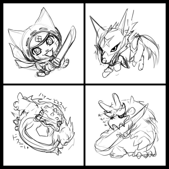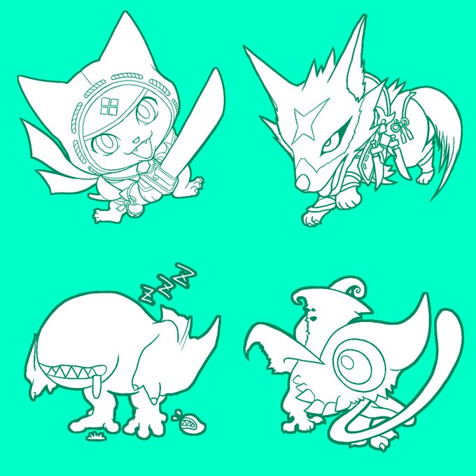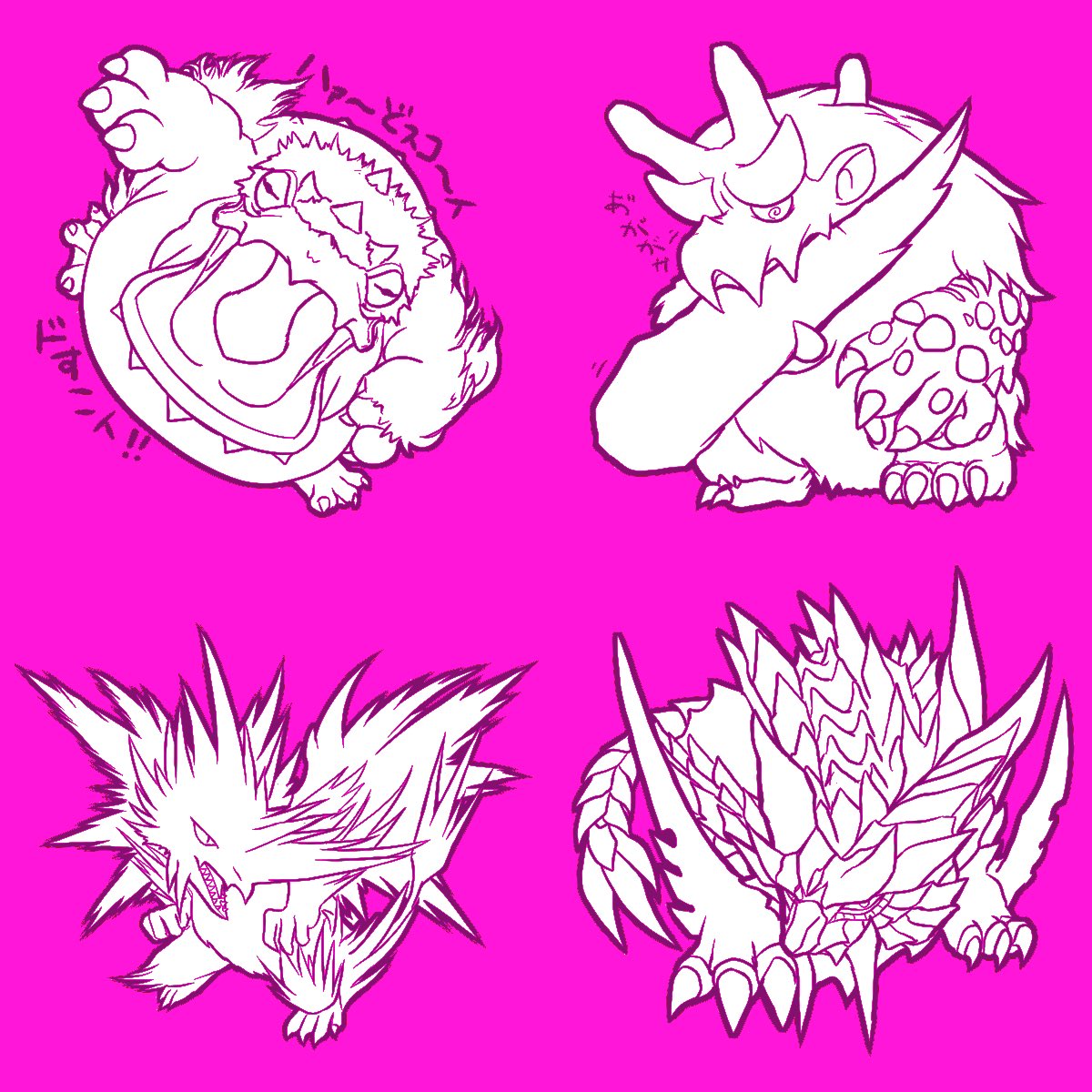 モンハングッズ用のイラストラフスケッチ中 初代からサンブレイクまでいろいろだよ❤ #モンハンイラスト #モンハン #モンハンライズ #MHRiseサンブレイク #MonsterHunter #MonsterHunterRiseSunbreak #MonsterHunterFanart