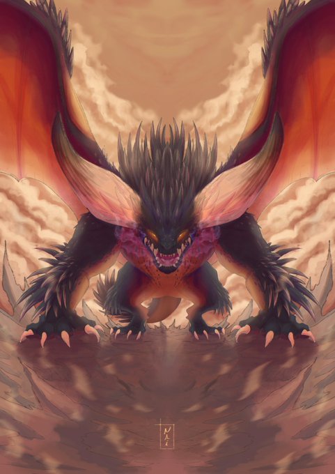 コミケ用のイラスト追加分ソノニ イヴェルカーナと怨嗟響めくマガイマガド エフェクト大変なやつ💦 #モンハンイラスト #モンハン #モンハンライズ #MHRiseサンブレイク #MonsterHunter #MonsterHunterRiseSunbreak #MonsterHunterFanart