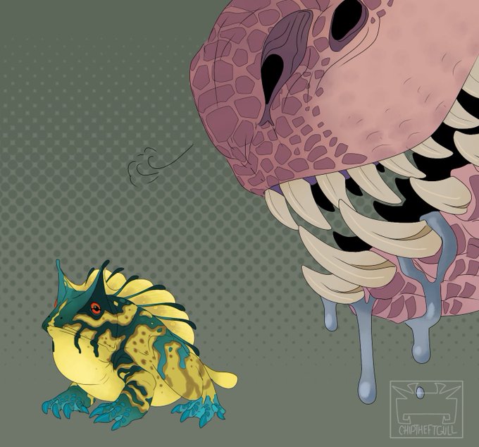 dont lick toads ! paratoad my beloved, and an anjanath cameo #MonsterHunter #monsterhunterworld #monsterhunterrise #art #dinosaur #fanart