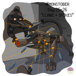 New entry for @BeastSoulArt's #monstober2021. Days 25 and 26's theme: "Claws + Spikes" (a malfunctioned Mobile Autonomous Industrial Driller a.k.a M.A.I.D. unit on a rampage. I've been wanting to make a killer robot since monstober started). #monstober|#inktober2021|#inktober