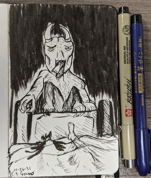 New entry for @BeastSoulArt's #monstober2021. Days 27 and 28's theme: "Nightmare" (do you know that 1958 Mr. Sandman song? Well, better not ask this Sandman to bring you anything). #monstober|#inktober2021|#inktober